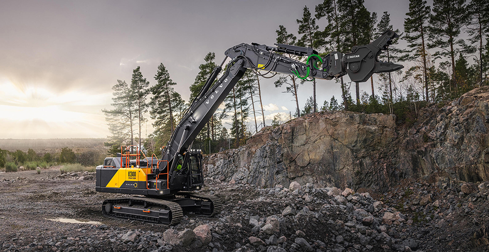 Wenn Sie überragende Leistung für Abbrucharbeiten suchen, liegen Sie mit dem Volvo EC300 mit geradem Ausleger richtig. Die Maschine bietet die Qualität und den Komfort, die Sie von einem standardmäßigen Raupenbagger von Volvo erwarten würden, und das bei einer um 30 % größeren Reichweite. So erhalten Sie einen optimalen Überblick über die Baustelle, eine besonders hervorragenden Stabilität und Hubleistung und besonders zuverlässigen Schutz vor herabfallenden Trümmern. Erfahren Sie mehr über die Funktionen, die diesen Bagger zur besten Wahl für Abbrucharbeiten machen, und lesen Sie mehr über die Neuerungen im Vergleich zur E-Generation der Maschine.