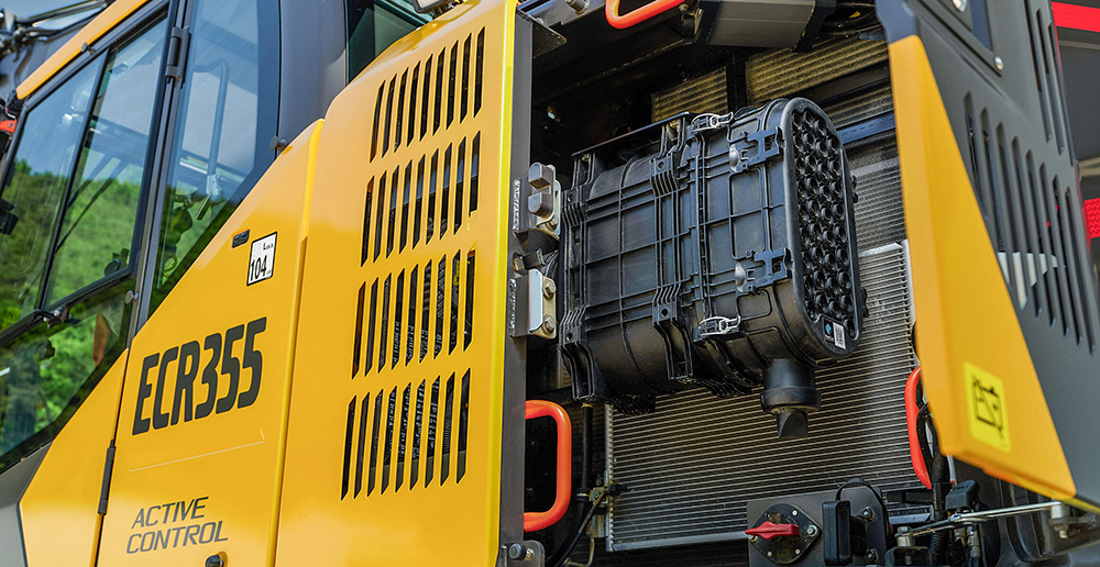 Der ECR355 kombiniert einen kurzen Schwenkradius mit einer herkömmlichen Kabine, wodurch im Vergleich zu einer herkömmlichen Kabine mit kurzem Schwenkradius ein um 20 % größerer Innenraum entsteht. Ergänzt wird dies durch eine Vielzahl von Funktionen, die den Bedienerkomfort erhöhen sollen. Dazu gehören eine um 50 % verbesserte Kühlleistung in der Kabine, weniger Geräusche, Bluetooth-Konnektivität, kabelloses Laden von Mobiltelefonen, umfangreiche Stauraummöglichkeiten und ein zweistufiges Filtersystem für bessere Luftqualität: Vorfilter und Hauptfilter.