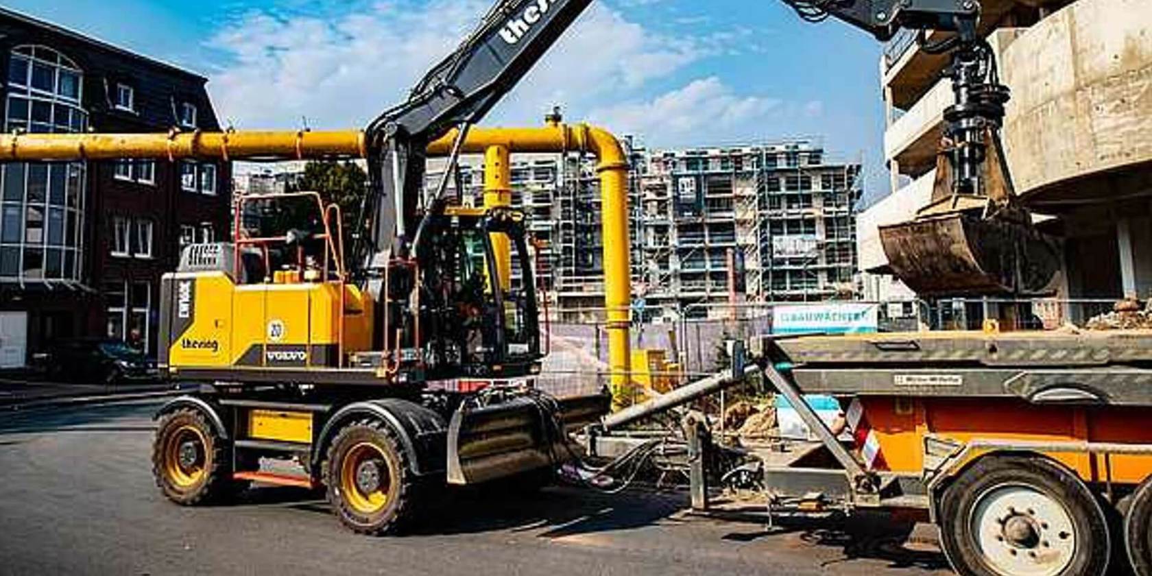 Mit der von Tietjen nachgerüsteten Druckluft-Bremsanlage ist der Mobilbagger nun in der Lage, sich mit Anhängern bis hin zu Lkw-Anhängern inklusive eigenem Arbeitsgerät wie Löffel, Rüttelplatte, Meißel oder ähnlichem sicher auf der Straße zu bewegen. In diesem Fall wurde der Mobilbagger dafür ausgestattet, dass er einen Muldenanhänger mit Bauschutt füllt, wegtransportiert und mit leerer Mulde zur Baustelle zurückkehrt. Für diese Transportfahrten ist somit kein zusätzliches Fahrzeug notwendig.