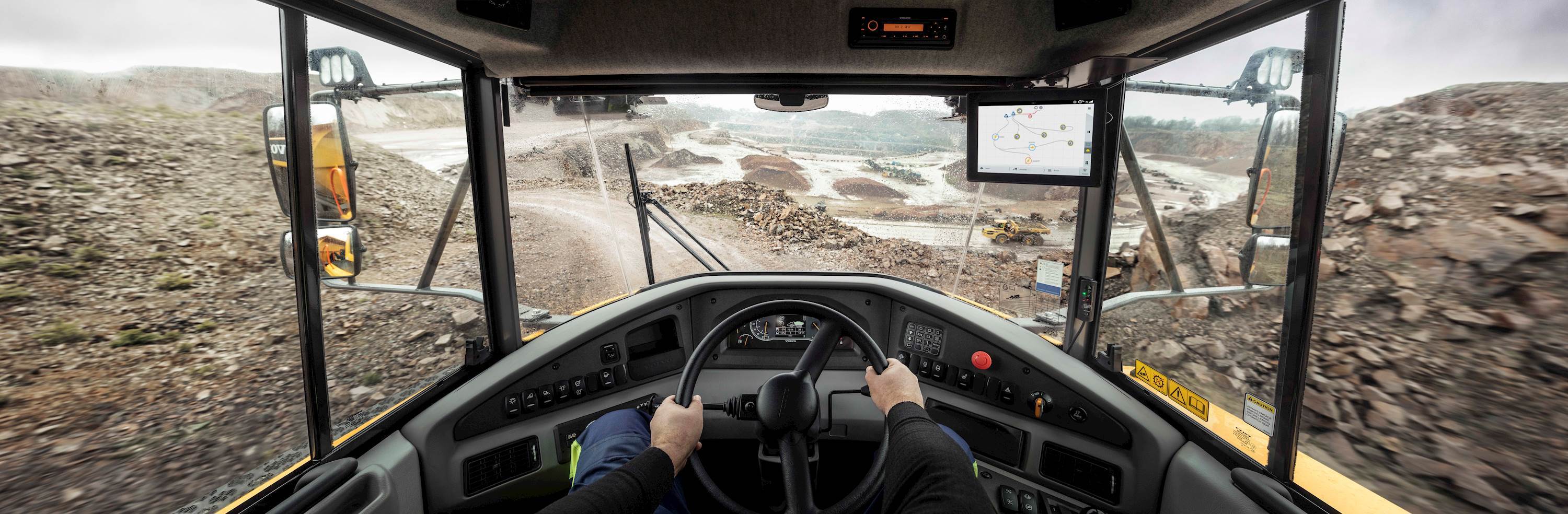 Terrain Memory ist eine praktische Funktion des intelligenten Volvo-Antriebsstrangs, die rutschige Straßenabschnitte erkennt und speichert, um eine optimierte Traktionskontrolle und Mobilität im Gelände zu gewährleisten. OptiShift ermöglicht schnelle und sanfte Richtungswechsel, während Downhill Speed Control automatisch eine konstante Geschwindigkeit in Gefällstrecken beibehält. Diese beiden und die Tempomatfunktion sind seit 2019 serienmäßig eingebaut und können bei älteren Dumpern nachgerüstet werden.